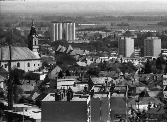 látkép panoráma panelház templom gyárkémény panoráma Szekszárd Tolna megye Magyarország 1989 Bakó JenőFotó részletei