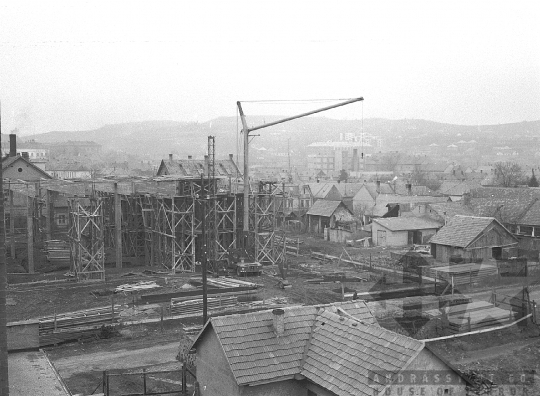 panoráma építkezés művelődési ház daru Szekszárd Tolna megye Magyarország 1967 Bakó JenőFotó részletei