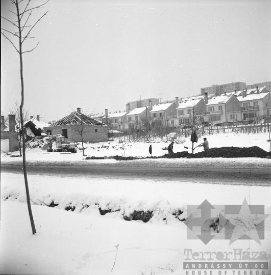 tél hó utcakép családi ház munkagép Szekszárd Tolna megye Magyarország 1970 Bakó JenőFotó részletei