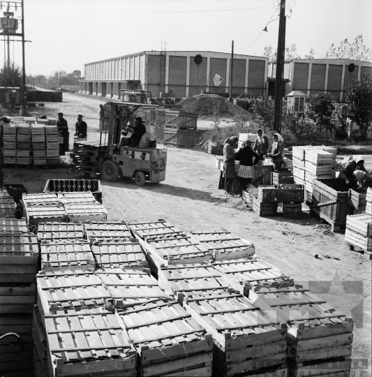 termelőszövetkezet láda alma targonca Bogyiszló Tolna megye Magyarország 1978 Bakó JenőFotó részletei