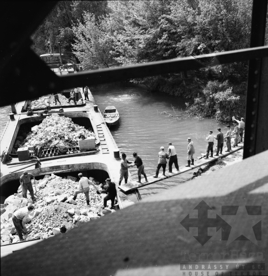 uszály csónak kő szállítás hajózás rakodómunkás Dunaföldvár Tolna megye Magyarország 1967 Bakó JenőFotó részletei