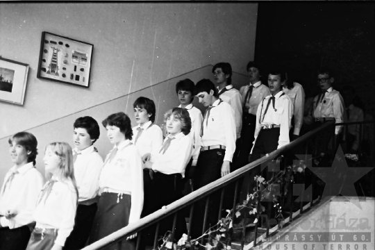 általános iskola diák iskola ünnepség évzáró ünneplő úttörő egyenruha ballagás Mórágy Tolna megye Magyarország 1984 Bakó JenőFotó részletei