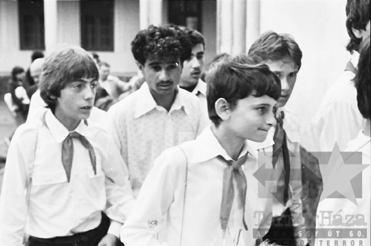 általános iskola diák iskola ünnepség évzáró ünneplő úttörő egyenruha ballagás Mórágy Tolna megye Magyarország 1984 Bakó JenőFotó részletei