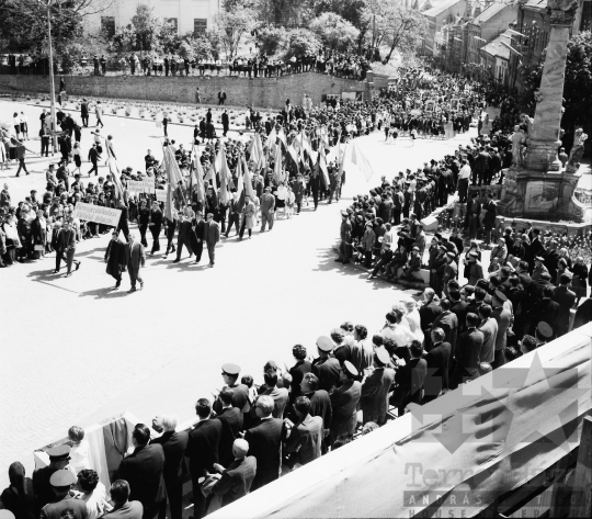 szocialista állami ünnep május 1. munka ünnepe felvonulás transzparens zászló Szekszárd Tolna megye Magyarország 1966 Bakó JenőFotó részletei