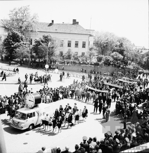 szocialista állami ünnep május 1. munka ünnepe transzparens felvonulás autó Szekszárd Tolna megye Magyarország 1966 Bakó JenőFotó részletei