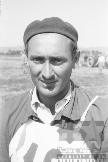 szántás svájci sapka szocialista munkaverseny rajtszám portré Őcsény Tolna megye Magyarország 1966 Bakó JenőFotó részletei