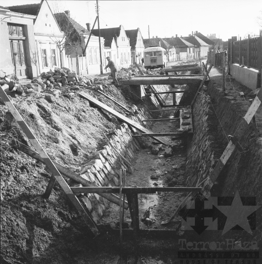 utcakép árok építkezés csatorna Paks Tolna megye Magyarország 1968 Bakó JenőFotó részletei