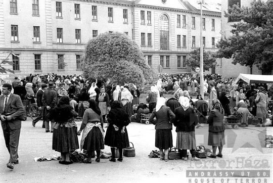 árus kendő parasztasszony tömeg kosár piac Szekszárd Tolna megye Magyarország 1968 Bakó JenőFotó részletei