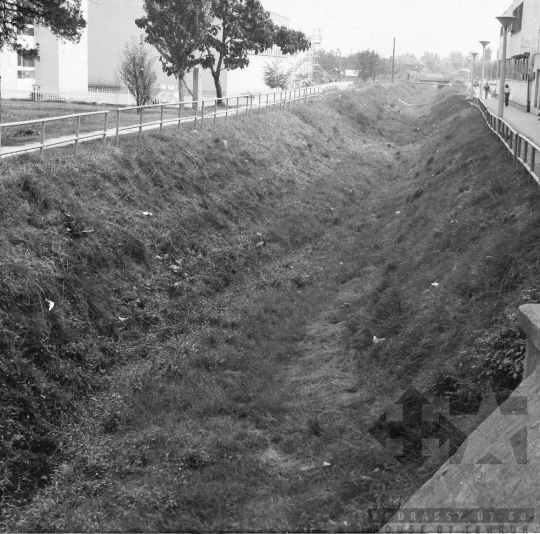 utcakép meder patak korlát Szekszárd Tolna megye Magyarország 1977 Bakó JenőFotó részletei