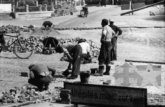 utcakép útépítés macskakő talicska belváros motor Szekszárd Tolna megye Magyarország 1973 Bakó Jenő