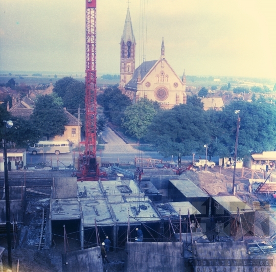 templom panoráma építkezés daru busz utcakép Szekszárd Tolna megye Magyarország 1971 Bakó Jenő