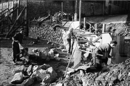 utcakép építkezés talicska svájcisapka Szekszárd Tolna megye Magyarország 1967 Bakó JenőFotó részletei