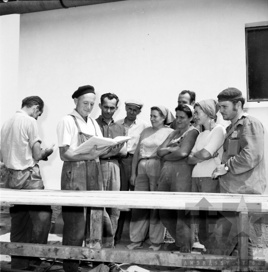termelőszövetkezet brigádgyűlés brigád svájci sapka Dombóvár Tolna megye Magyarország 1966 Bakó JenőFotó részletei