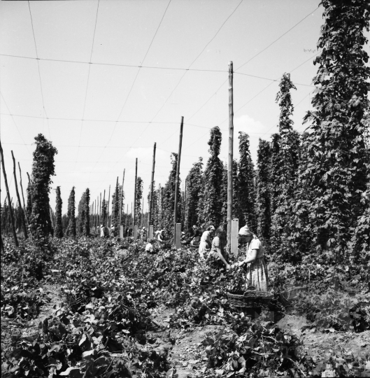 kendő komló kosár állami gazdaság betakarítás Tamási-Fornád Tolna megye Magyarország 1966 Bakó JenőFotó részletei