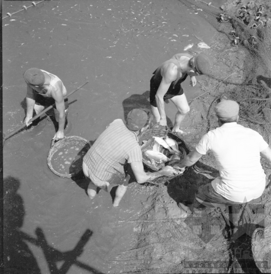 állami gazdaság halász kosár hal svájci sapka halászat Fornád Tolna megye Magyarország 1966 Bakó JenőFotó részletei