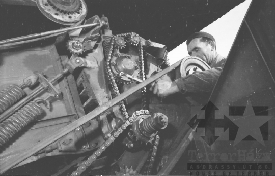 termelőszövetkezet munkagép svájci sapka Mözs Tolna megye Magyarország 1966 Bakó JenőFotó részletei