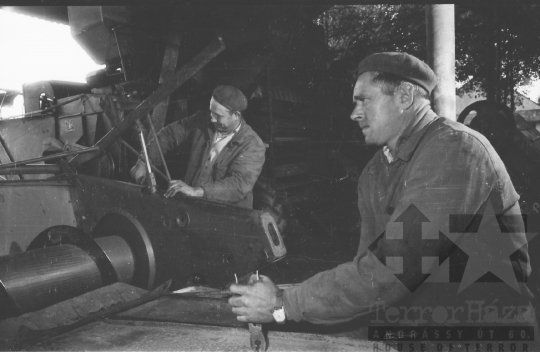 termelőszövetkezet munkagép svájci sapka Mözs Tolna megye Magyarország 1966 Bakó JenőFotó részletei