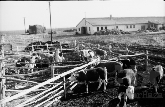 termelőszövetkezet állattenyésztés szarvasmarha istálló karám tehén Regöly Tolna megye Magyarország 1966 Bakó JenőFotó részletei
