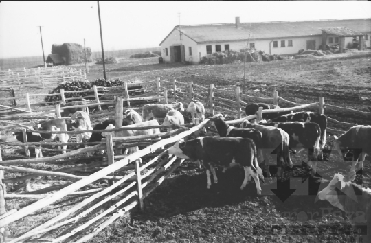 termelőszövetkezet állattenyésztés szarvasmarha tehén karám Regöly Tolna megye Magyarország 1966 Bakó JenőFotó részletei
