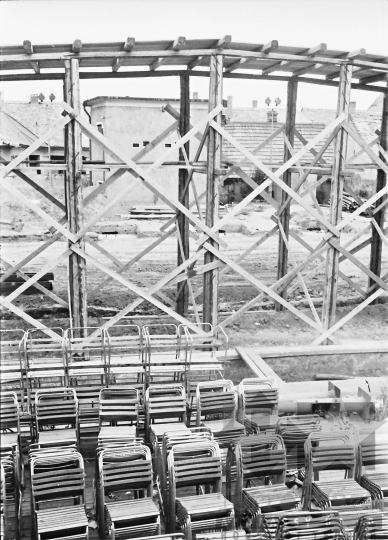 építkezés kertmozi széksor állványzat Szekszárd Tolna megye Magyarország 1967 Bakó JenőFotó részletei