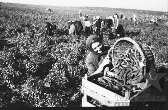 termelőszövetkezet paprika láda kendő betakarítás kosár Mözs Tolna megye Magyarország 1967 Bakó JenőFotó részletei