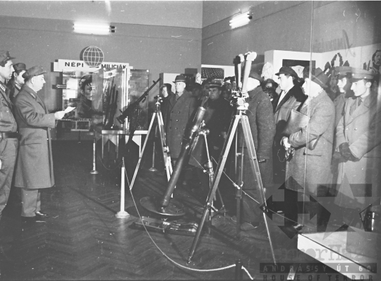 munkásőrség beszéd zászló kiállítás munkásőr karhatalom egyenruha tiszt lőfegyver Szekszárd Tolna megye Magyarország 1967 Bakó JenőFotó részletei