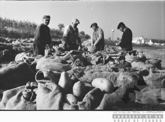 termelőszövetkezet burgonya zsák betakarítás Nagyszokoly Tolna megye Magyarország 1967 Bakó JenőFotó részletei