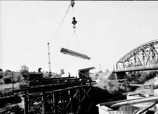 vasút híd építkezés betonelem daru Simontornya Tolna megye Magyarország 1967 Bakó JenőFotó részletei