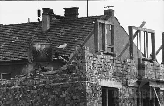 utcakép építkezés daru tégla Szekszárd Tolna megye Magyarország 1967 Bakó JenőFotó részletei
