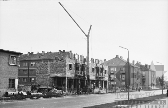 utcakép építkezés daru tégla Szekszárd Tolna megye Magyarország 1967 Bakó JenőFotó részletei