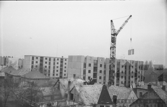 AZONOSÍTÓ: THM-BJ-00717 Férfi beszédet mond - transzparensen felirat: "Munkánk minőségének és hatékonyságának javításával, többletvállalásokkal készülünk a NAGY OKT. SZOC. FORR. 60. évfordulójára". [Az októberi orosz forradalom (kommunista propagandában: nagy októberi szocialista forradalom) 1917. november 6–12. (október 24–30.) között zajlott, amelynek során a bolsevikok a Téli Palota ostroma után az ott székelő Ideiglenes Kormány tagjait letartóztatták, és Lenin vezetésével, akit a Népbiztosok Tanácsa elnökévé választottak, puccsal átvették a hatalmat. Hazánkban ez a nap 1950-től 1989-ig pártállami ünnep volt.] [A szocialista brigádmozgalom szovjet mintára az 1950-es évek végén kezdett kibontakozni Magyarországon, és rendszerváltoztatáskor szűnt meg. Kezdetben csak az ipari üzemekben és gyárakban alakultak meg a brigádok, majd az agráriumban és a hivatali szférában is létrejöttek. A mozgalom jelszava: „Szocialista módon dolgozni, tanulni és élni” volt.] HELYSZÍN: Szekszárd, Tolna megye DÁTUM: 1977 FOTÓS: Bakó Jenő