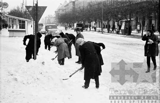 tél hó lapát bódé szemetes kuka utcakép belváros Szekszárd Tolna megye Magyarország 1968 Bakó JenőFotó részletei