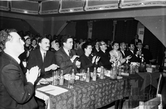 AZONOSÍTÓ: THM-BJ-00716a A rendezvény résztvevői. [A szocialista brigádmozgalom szovjet mintára az 1950-es évek végén kezdett kibontakozni Magyarországon, és rendszerváltoztatáskor szűnt meg. Kezdetben csak az ipari üzemekben és gyárakban alakultak meg a brigádok, majd az agráriumban és a hivatali szférában is létrejöttek. A mozgalom jelszava: „Szocialista módon dolgozni, tanulni és élni” volt.] HELYSZÍN: Szekszárd, Tolna megye DÁTUM: 1977 FOTÓS: Bakó Jenő