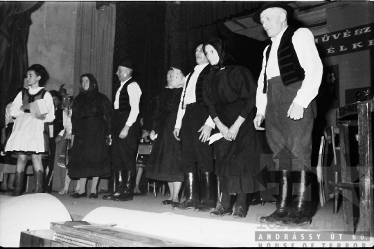 színpad előadás népművészet vetélkedő népviselet Szekszárd Tolna megye Magyarország 1968 Bakó JenőFotó részletei
