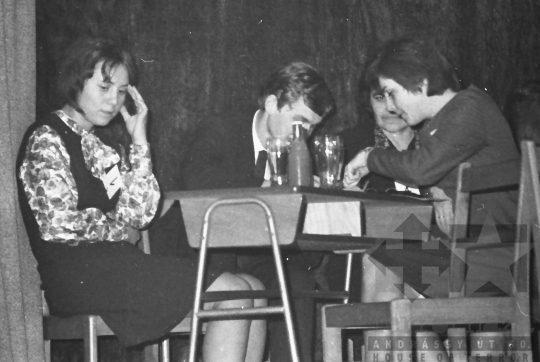 AZONOSÍTÓ: THM-BJ-00716 A rendezvény résztvevői. [A szocialista brigádmozgalom szovjet mintára az 1950-es évek végén kezdett kibontakozni Magyarországon, és rendszerváltoztatáskor szűnt meg. Kezdetben csak az ipari üzemekben és gyárakban alakultak meg a brigádok, majd az agráriumban és a hivatali szférában is létrejöttek. A mozgalom jelszava: „Szocialista módon dolgozni, tanulni és élni” volt.] HELYSZÍN: Szekszárd, Tolna megye DÁTUM: 1977 FOTÓS: Bakó Jenő