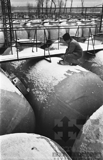 konzervgyár tartály hó Paks Tolna megye Magyarország 1968 Bakó JenőFotó részletei