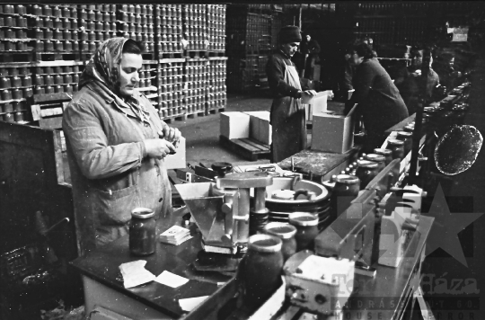 konzervgyár üveg üzem kendő címke Paks Tolna megye Magyarország 1968 Bakó JenőFotó részletei