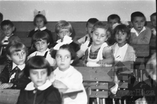 általános iskola diák iskola tanterem iskolapad köpeny Szekszárd Tolna megye Magyarország 1968 Bakó JenőFotó részletei