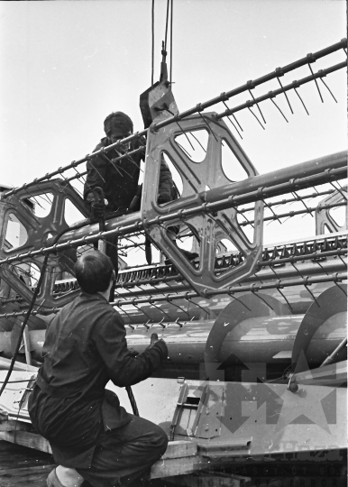 szállítás vasút tehervonat szerelvény kombájn CLAAS Szekszárd Tolna megye Magyarország 1978 Bakó JenőFotó részletei