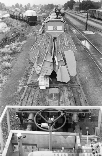 szállítás vasút tehervonat szerelvény kombájn CLAAS Szekszárd Tolna megye Magyarország 1978 Bakó JenőFotó részletei