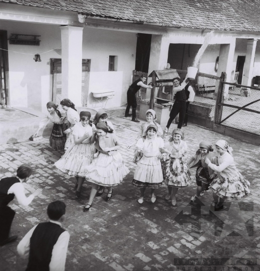 népszokás húsvét játék udvar kerekes kút tornác parasztház néprajz Decs Tolna megye Magyarország 1965 Bakó JenőFotó részletei