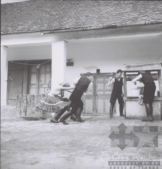 népszokás húsvét játék udvar kerekes kút tornác parasztház néprajz Decs Tolna megye Magyarország 1965 Bakó JenőFotó részletei