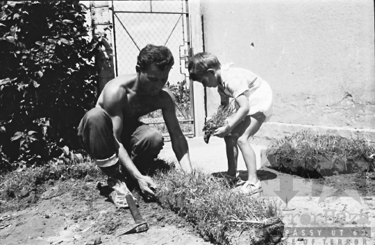 AZONOSÍTÓ: THM-BJ-00717 Férfi beszédet mond - transzparensen felirat: "Munkánk minőségének és hatékonyságának javításával, többletvállalásokkal készülünk a NAGY OKT. SZOC. FORR. 60. évfordulójára". [Az októberi orosz forradalom (kommunista propagandában: nagy októberi szocialista forradalom) 1917. november 6–12. (október 24–30.) között zajlott, amelynek során a bolsevikok a Téli Palota ostroma után az ott székelő Ideiglenes Kormány tagjait letartóztatták, és Lenin vezetésével, akit a Népbiztosok Tanácsa elnökévé választottak, puccsal átvették a hatalmat. Hazánkban ez a nap 1950-től 1989-ig pártállami ünnep volt.] [A szocialista brigádmozgalom szovjet mintára az 1950-es évek végén kezdett kibontakozni Magyarországon, és rendszerváltoztatáskor szűnt meg. Kezdetben csak az ipari üzemekben és gyárakban alakultak meg a brigádok, majd az agráriumban és a hivatali szférában is létrejöttek. A mozgalom jelszava: „Szocialista módon dolgozni, tanulni és élni” volt.] HELYSZÍN: Szekszárd, Tolna megye DÁTUM: 1977 FOTÓS: Bakó Jenő