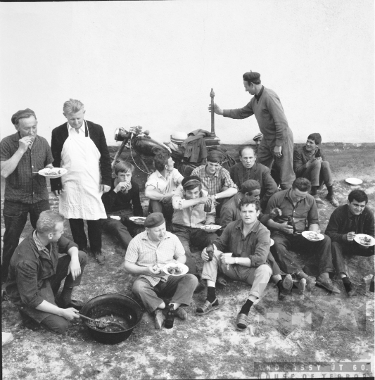 termelőszövetkezet szántás bogrács motor csoportkép Bonyhád Tolna megye Magyarország 1967 Bakó JenőFotó részletei
