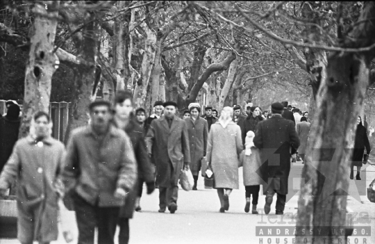 AZONOSÍTÓ: THM-BJ-00718 Néptánc produkció a színpadon - transzparenseken feliratok: "Hatékonyabb munkával a XI. pártkongresszus határozatainak következetes végrehajtásáért" "Munkánk minőségének és hatékonyságának javításával, többletvállalásokkal készülünk a NAGY OKT. SZOC. FORR. 60. évfordulójára". [Az októberi orosz forradalom (kommunista propagandában: nagy októberi szocialista forradalom) 1917. november 6–12. (október 24–30.) között zajlott, amelynek során a bolsevikok a Téli Palota ostroma után az ott székelő Ideiglenes Kormány tagjait letartóztatták, és Lenin vezetésével, akit a Népbiztosok Tanácsa elnökévé választottak, puccsal átvették a hatalmat. Hazánkban ez a nap 1950-től 1989-ig pártállami ünnep volt.] [A szocialista brigádmozgalom szovjet mintára az 1950-es évek végén kezdett kibontakozni Magyarországon, és rendszerváltoztatáskor szűnt meg. Kezdetben csak az ipari üzemekben és gyárakban alakultak meg a brigádok, majd az agráriumban és a hivatali szférában is létrejöttek. A mozgalom jelszava: „Szocialista módon dolgozni, tanulni és élni” volt.] HELYSZÍN: Szekszárd, Tolna megye DÁTUM: 1977 FOTÓS: Bakó Jenő