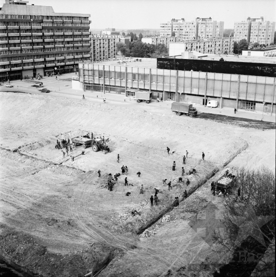 építőipar művelődési ház utcakép belváros traktor utánfutó Szekszárd Tolna megye Magyarország 1977 Bakó JenőFotó részletei