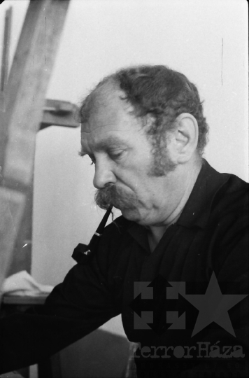 festő szövőszék műhely pipa művész Szekszárd Tolna megye Magyarország 1977 Bakó JenőFotó részletei
