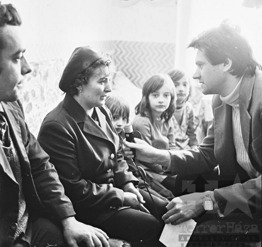 újságíró mikrofon gyerek család Mórágy Tolna megye Magyarország 1977 Bakó JenőFotó részletei