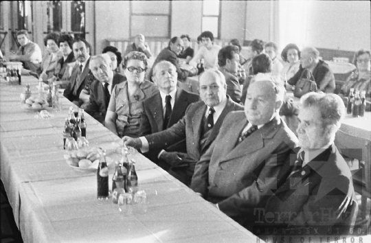 AZONOSÍTÓ: THM-BJ-00716 A rendezvény résztvevői. [A szocialista brigádmozgalom szovjet mintára az 1950-es évek végén kezdett kibontakozni Magyarországon, és rendszerváltoztatáskor szűnt meg. Kezdetben csak az ipari üzemekben és gyárakban alakultak meg a brigádok, majd az agráriumban és a hivatali szférában is létrejöttek. A mozgalom jelszava: „Szocialista módon dolgozni, tanulni és élni” volt.] HELYSZÍN: Szekszárd, Tolna megye DÁTUM: 1977 FOTÓS: Bakó Jenő
