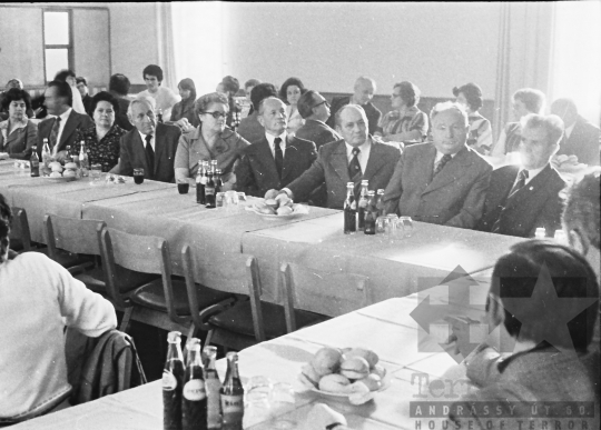 AZONOSÍTÓ: THM-BJ-00716 A rendezvény résztvevői. [A szocialista brigádmozgalom szovjet mintára az 1950-es évek végén kezdett kibontakozni Magyarországon, és rendszerváltoztatáskor szűnt meg. Kezdetben csak az ipari üzemekben és gyárakban alakultak meg a brigádok, majd az agráriumban és a hivatali szférában is létrejöttek. A mozgalom jelszava: „Szocialista módon dolgozni, tanulni és élni” volt.] HELYSZÍN: Szekszárd, Tolna megye DÁTUM: 1977 FOTÓS: Bakó Jenő
